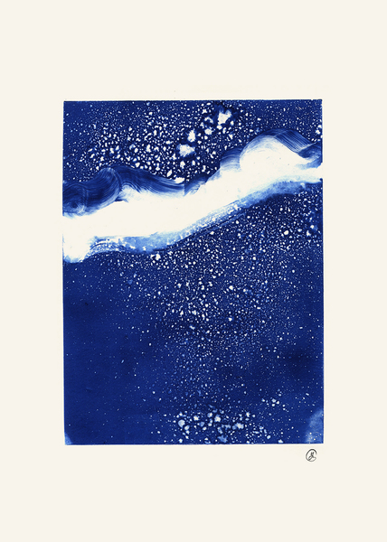 Bleu mythique, bleu craint ; désir doux, désir serein; Bleu désir rapproche l’horizon de la pensée qui supporte l’immensité. Une ode marine qui rejoint les deux bouts de l’espace, celui de l’infini et de l’intime.